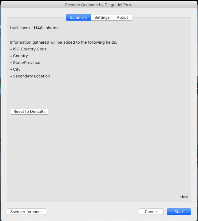 - If only one photo is selected the plug-in will run over all photos of the