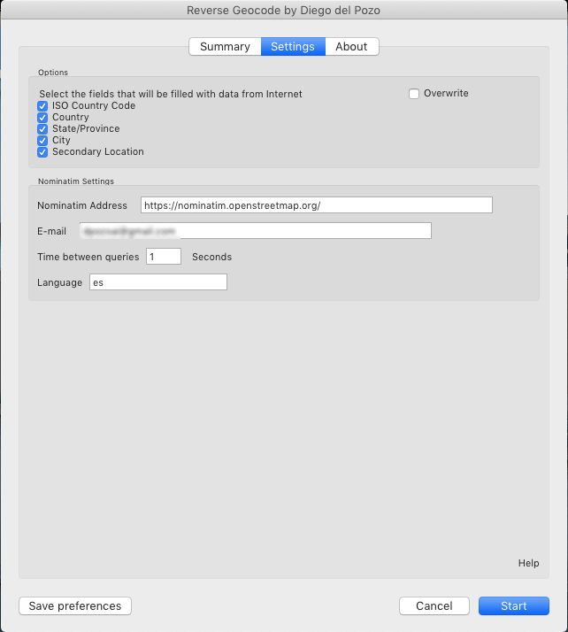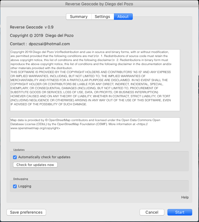 By clicking on "Save preferences" we will store our settings for future executions.